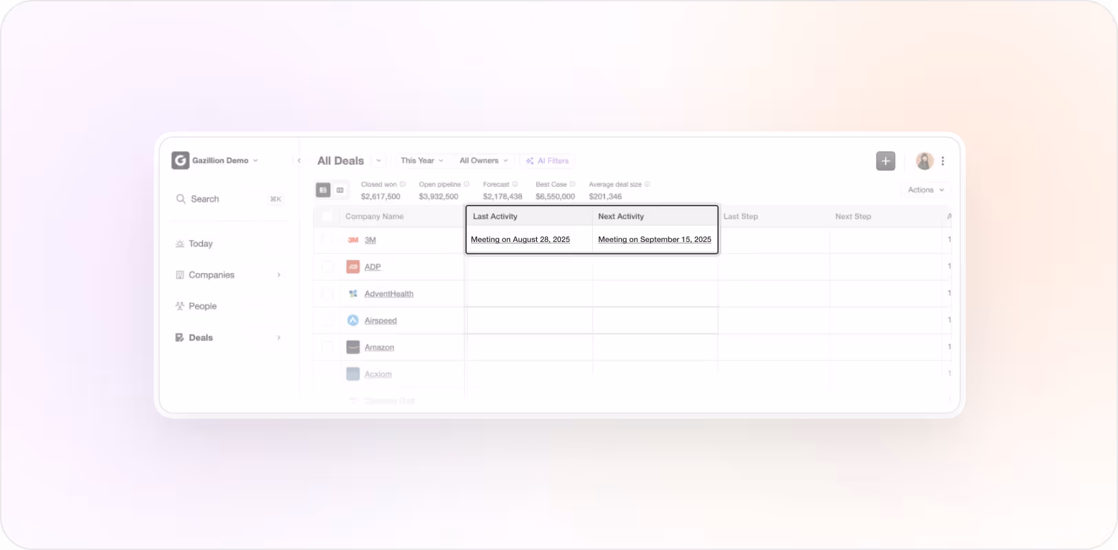 Access all AI or manual meeting notes straight from your sidebar without navigating to the company, person, or deal or finding it on the Today page. - Gmail sign-ups