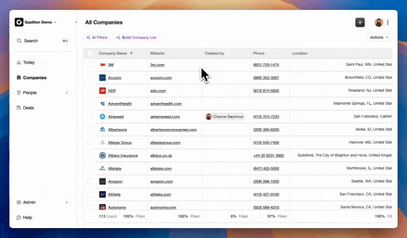 Filter deals, companies, and people by who created them. Super handy for tracking ownership across your team. - AI-Generated list titles for imports